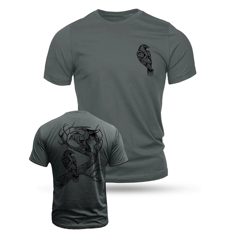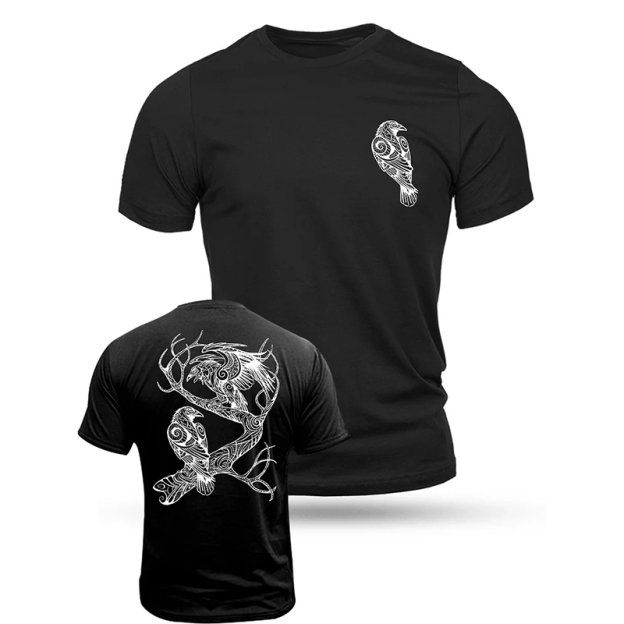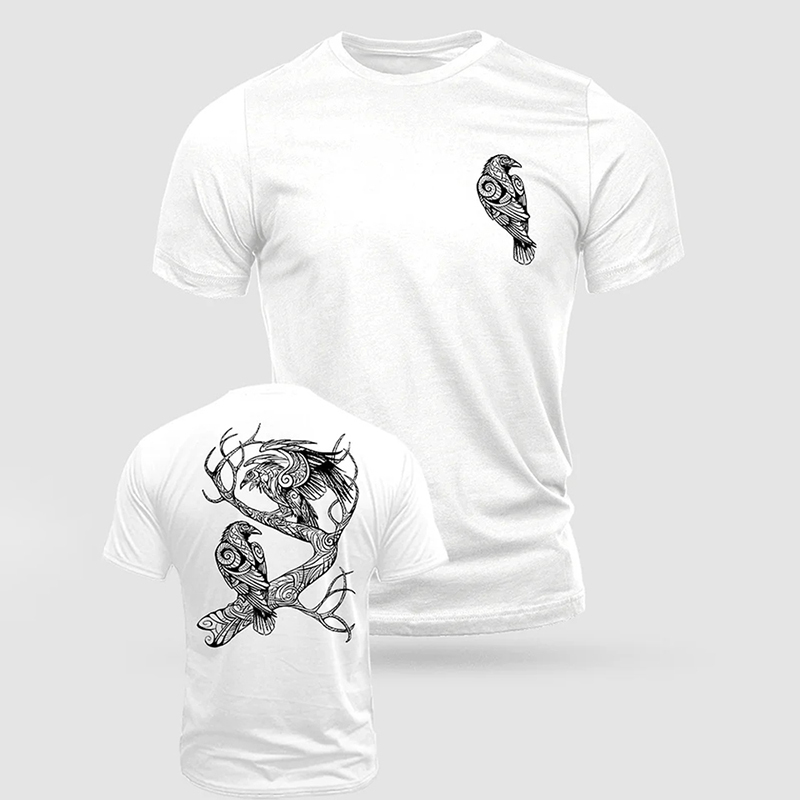 Men's Viking Branch And Raven Print Casual Short Sleeve T-shirt