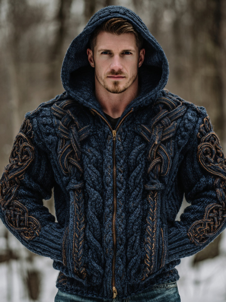 Men's Viking Celtic Knot Art Zip Cozy Hooded Cardigan
