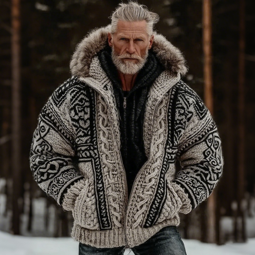 Men's Viking Celtic Knot Cozy Fur Hooded Cardigan