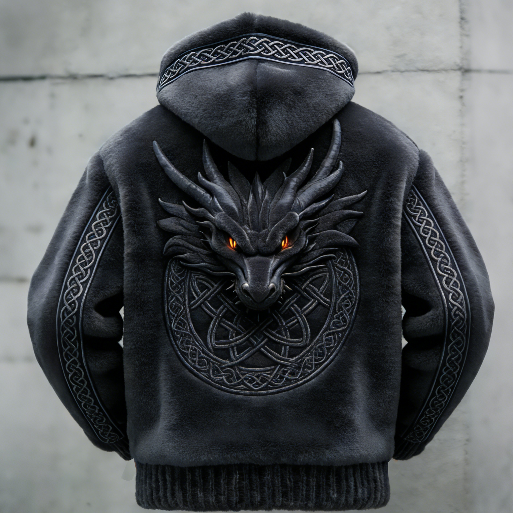 Men's Viking Dragon Celtic Knot Art Cozy Plush Hoodie