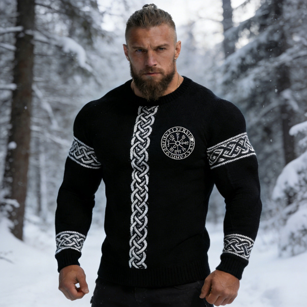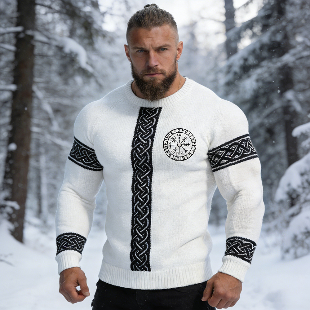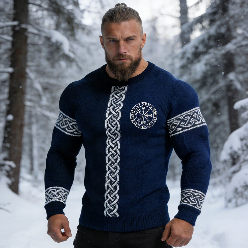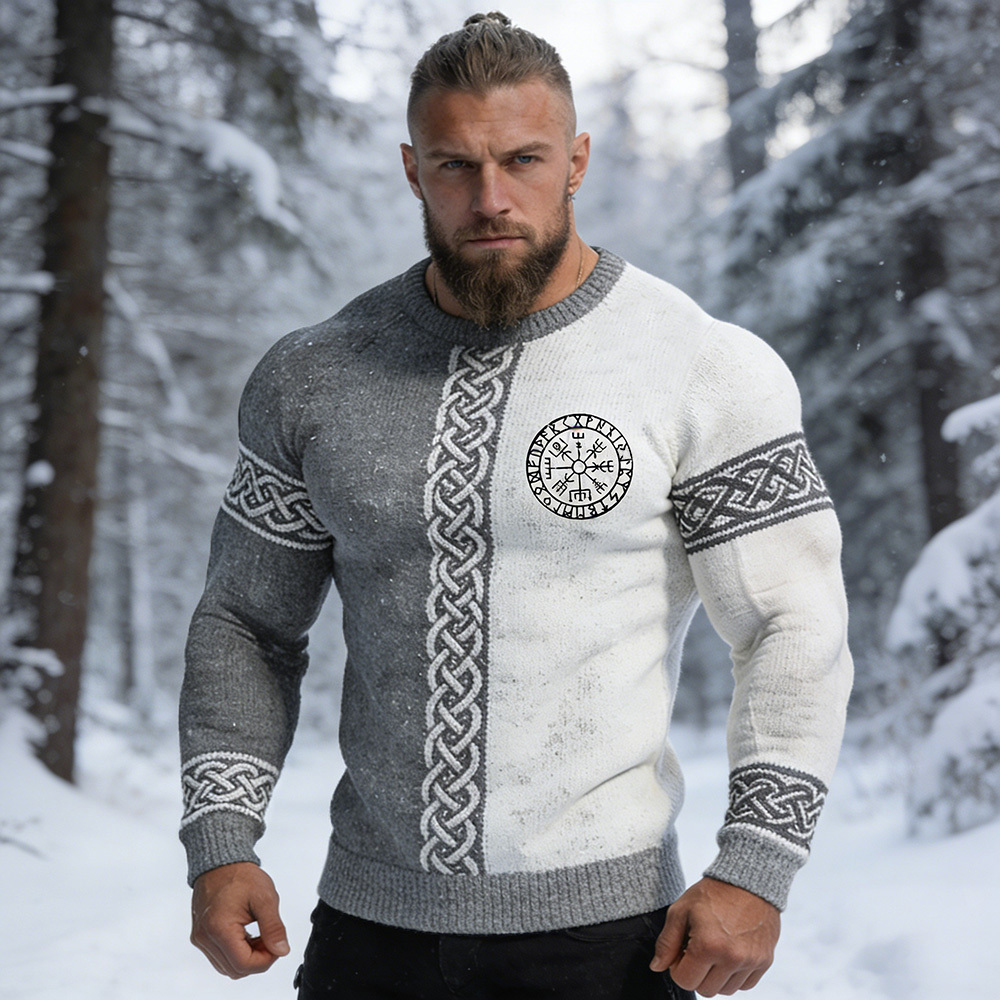 Men's Viking Vegvisir Celtic Knot Contrast Cozy Knit Sweater