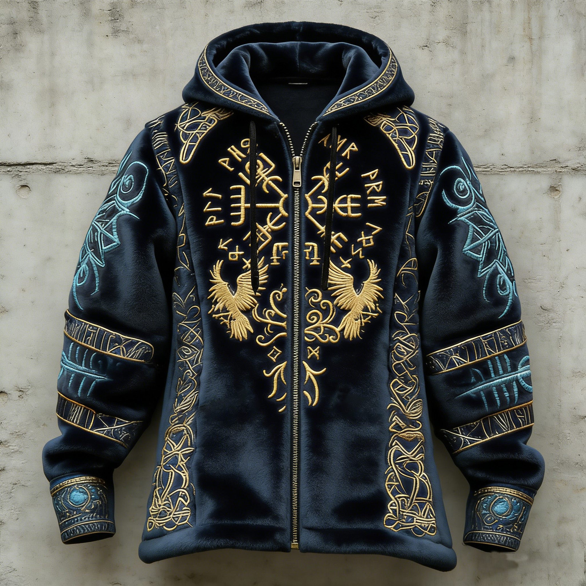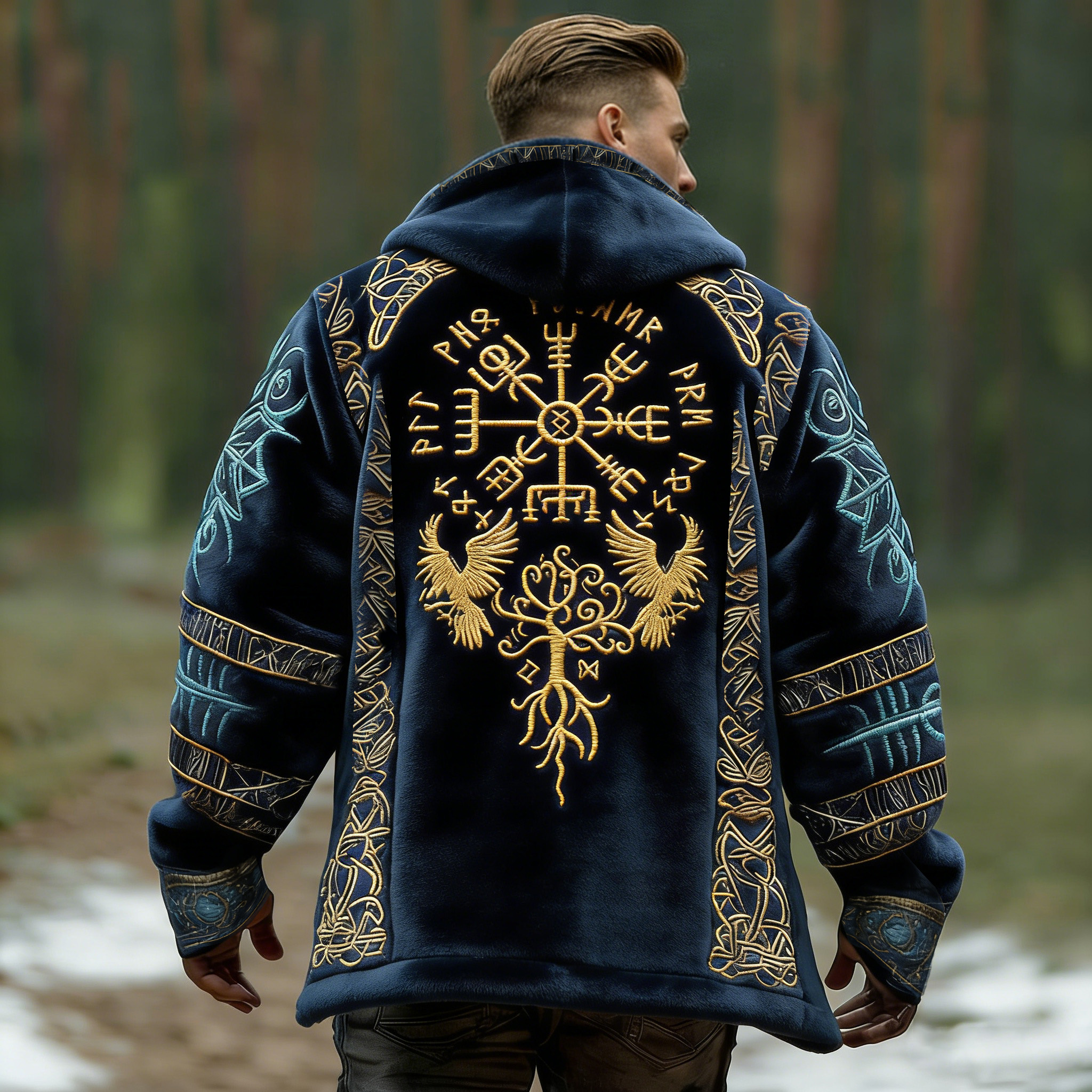 Men's Viking Vegvisir Life Of Tree With Birds Runes Art Cozy Flannel Zip-up Hoodie