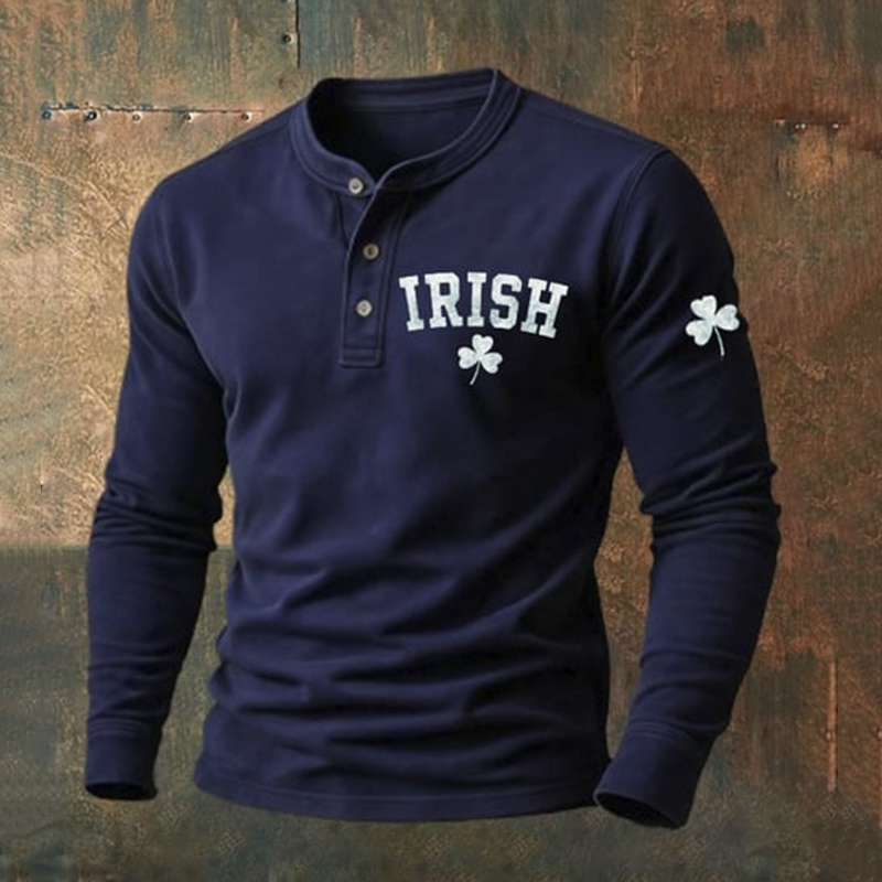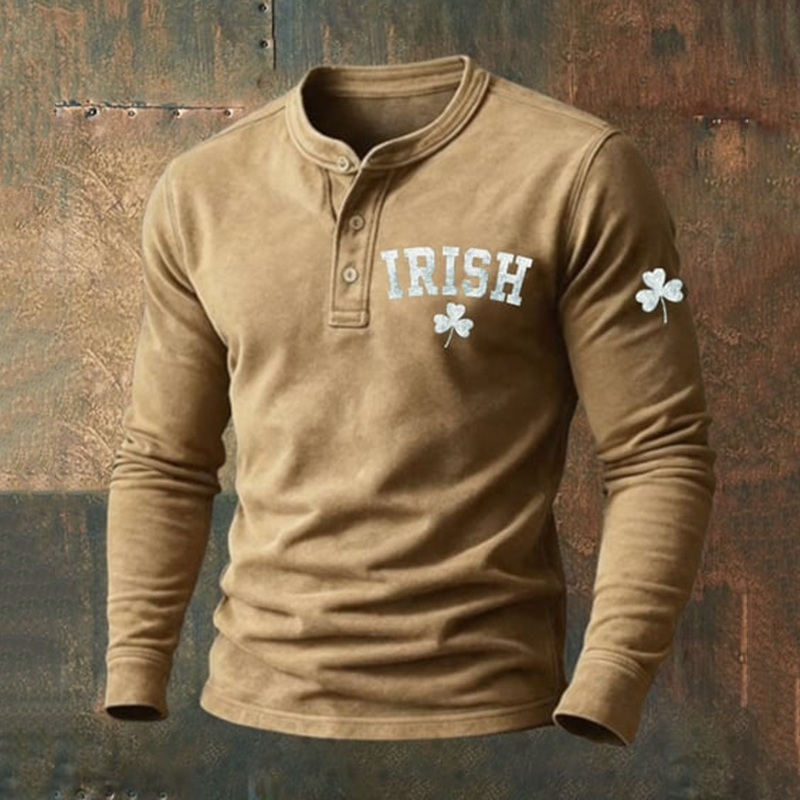 Men's Vintage St. Patrick's Day Print Henley Neck Shirt
