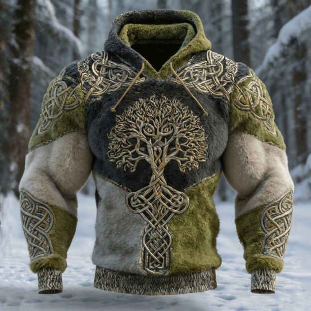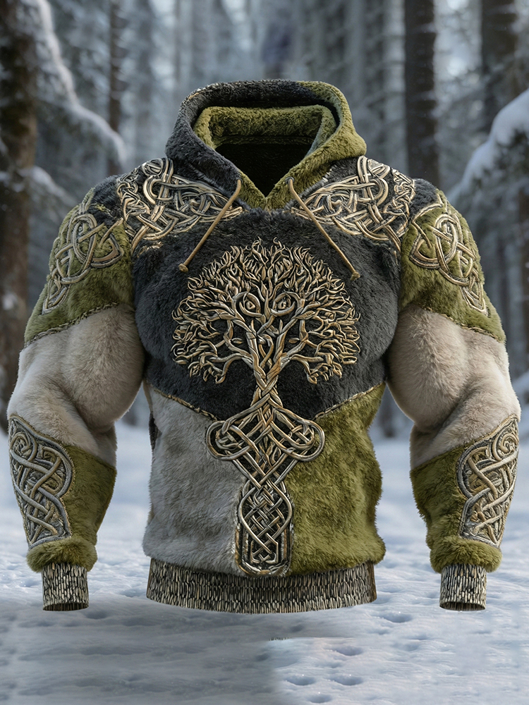 Men's Vintage Viking Celtic Tree Of Life Contrast Art Plush Hoodie