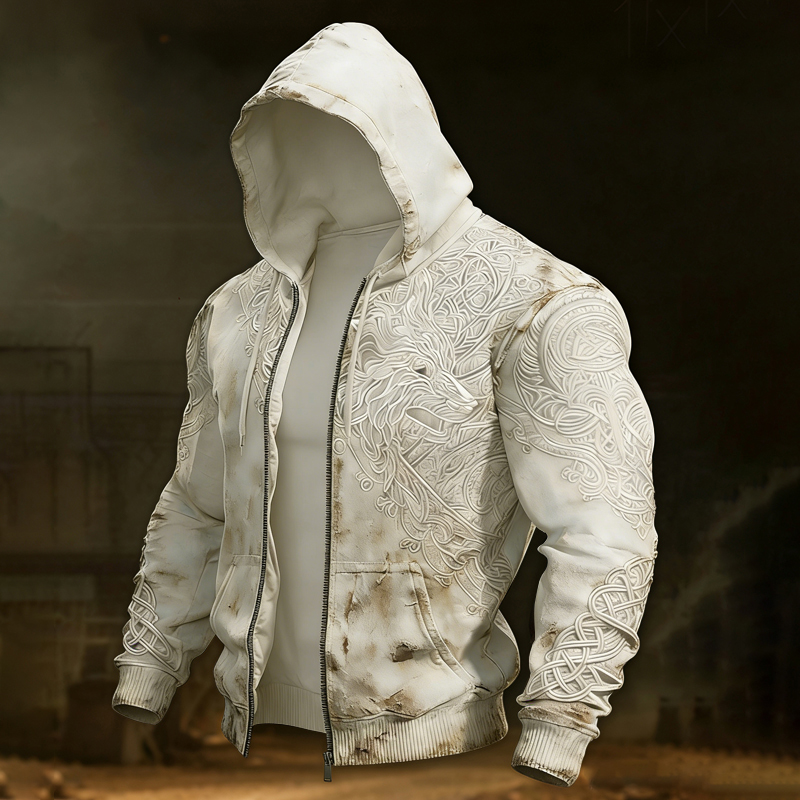 Men's Vintage Viking Wolf Celtic Zipper Up Casual Hoodie