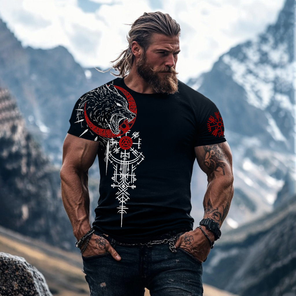 Men's Vintage Viking Wolf Totem Graphic Casual T Shirt
