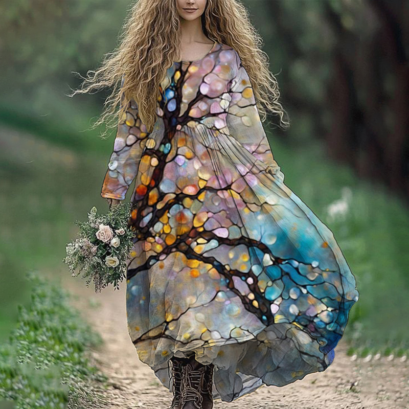 Oil Flower Tree Art Women's Linen Maxi Dress