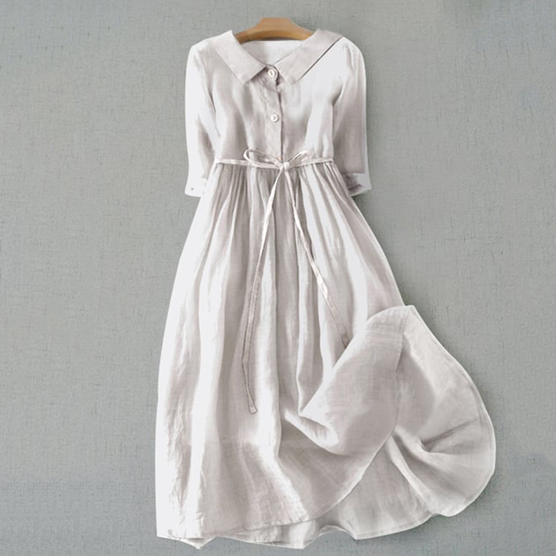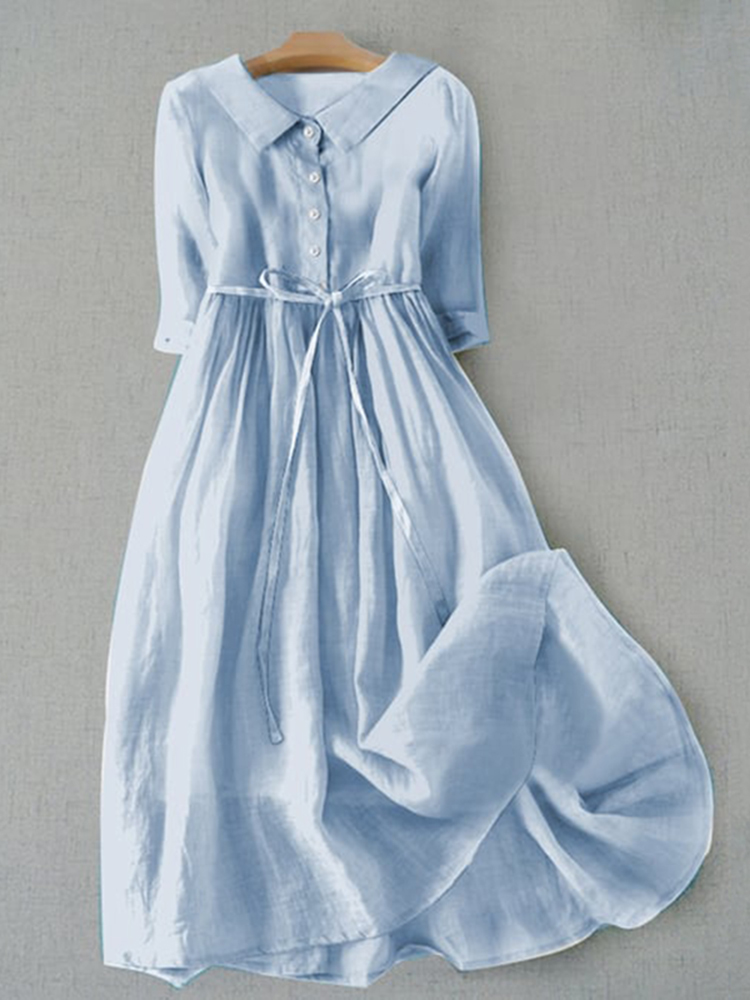 Solid Color Lapel Casual Midi Dress