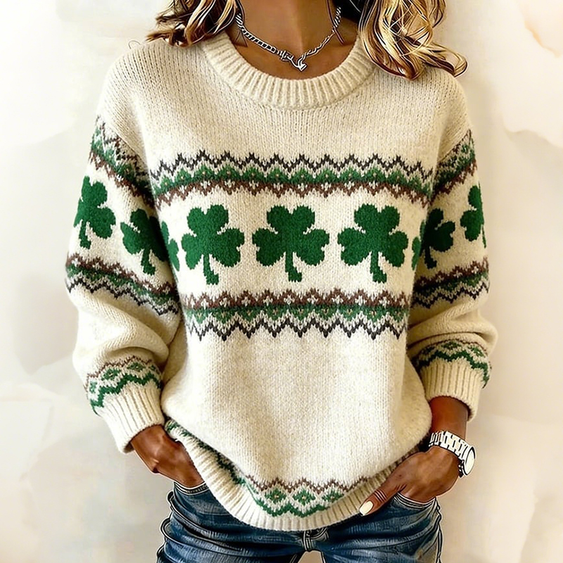 St. Patrick's Day Green Shamrock Pattern Knit Sweater