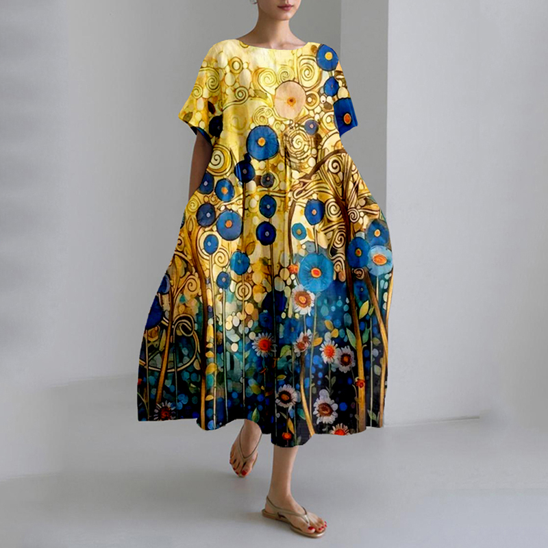 Ukraine Floral Art Painting Linen Blend Maxi Dress