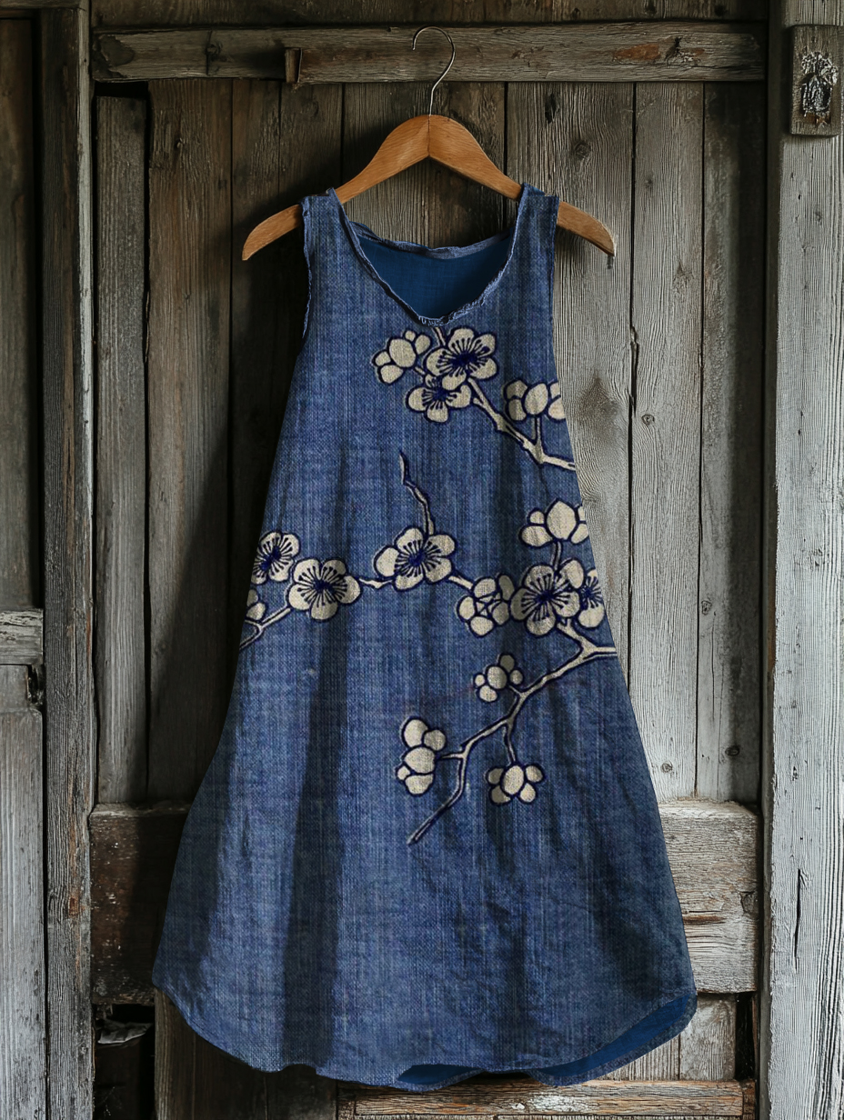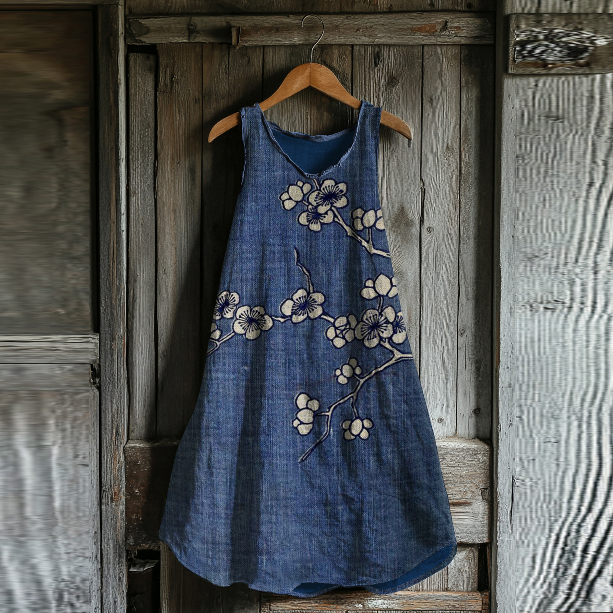 Vintage Cherry Blossoms Art Linen Blend Tank Dress