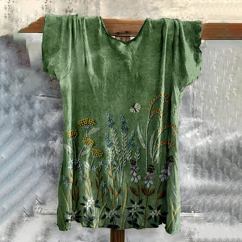 Vintage Embroidered Fresh Floral Cotton T-shirt
