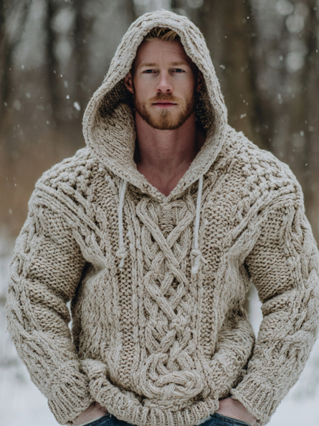 Vintage Fairman Island Jacquard Thick Warm Hooded Sweater
