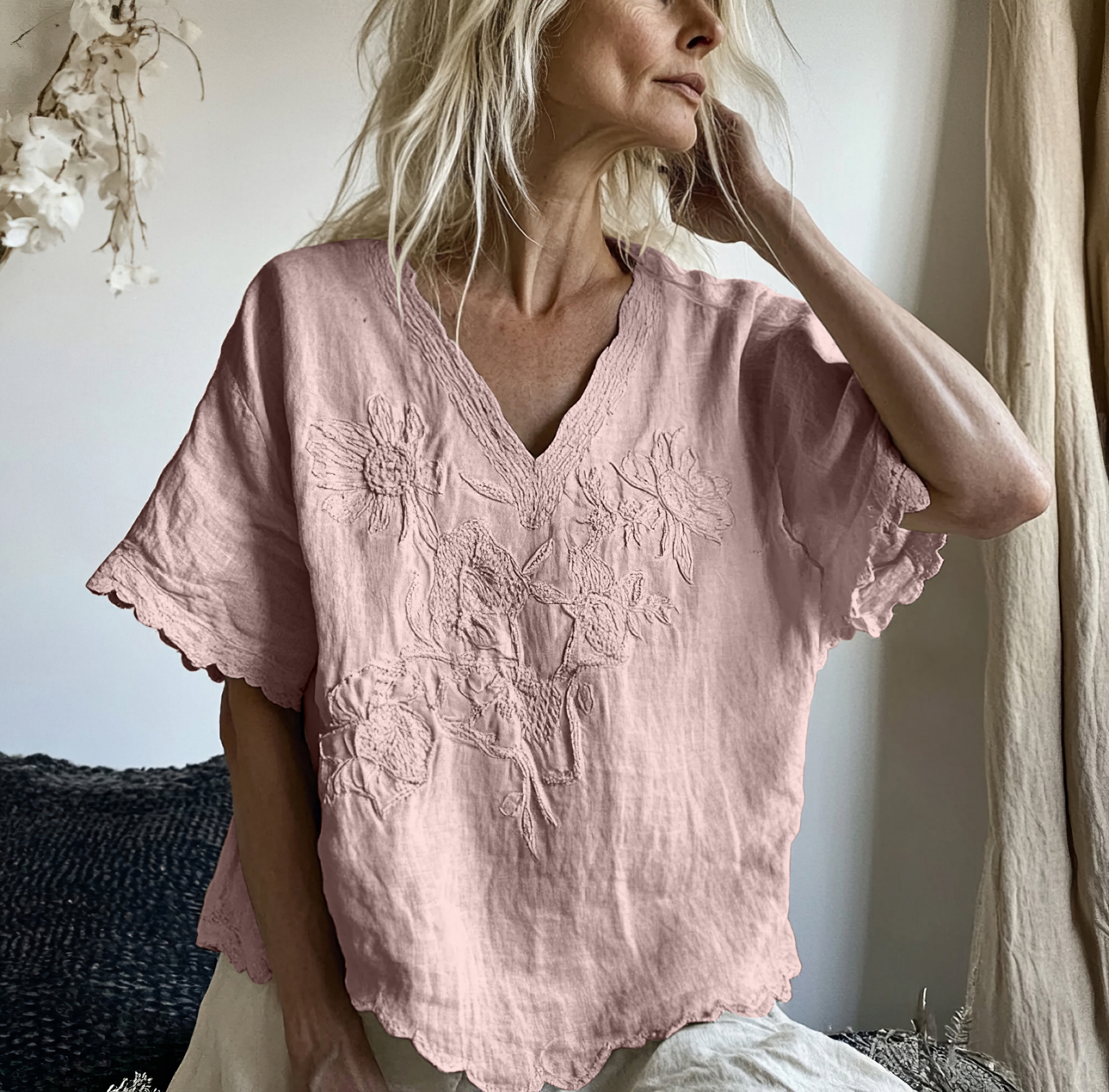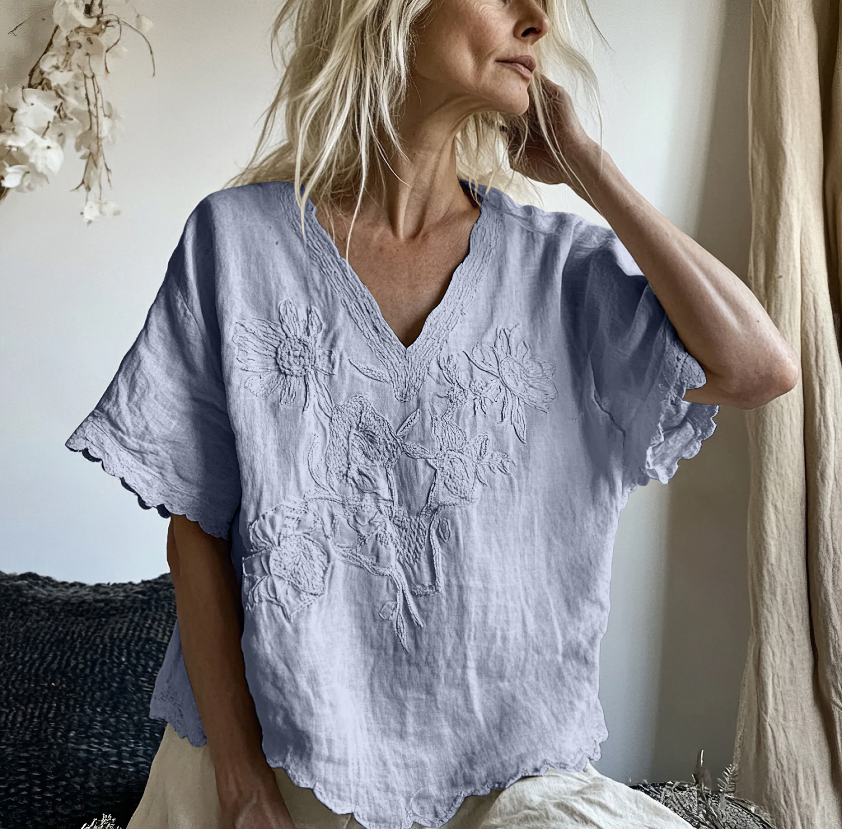 Vintage Floral Art Cotton Linen Comfy Shirt
