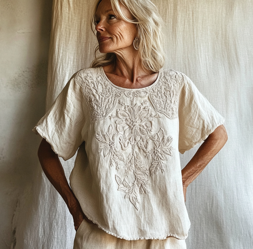 Vintage Floral Art Cotton Linen Comfy Shirt