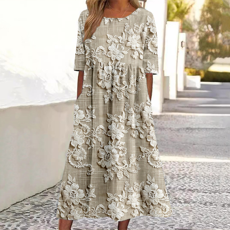 Vintage Floral Lace Embroidered Linen Blend Maxi Dress