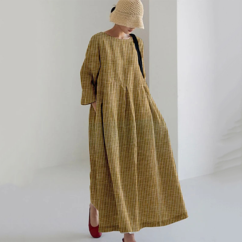 Vintage Stripe Pocket Casual Round Neck Maxi Dress