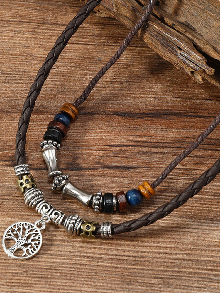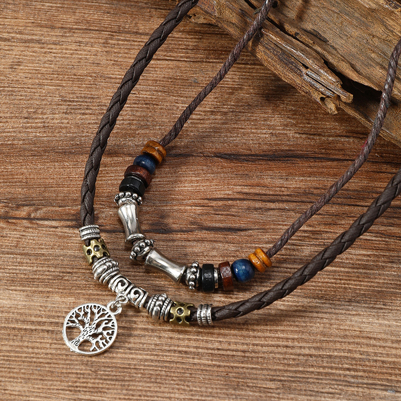 Vintage Tribal Style Tree Of Life Pendant Double Layer Necklace