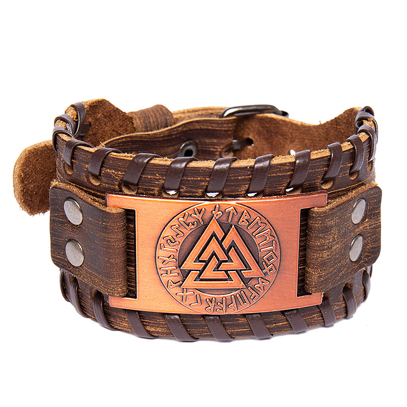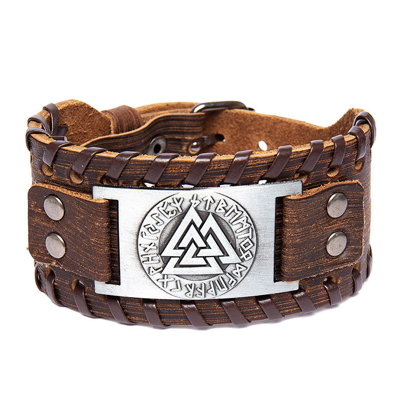 Vintage Viking Symbol Leather Wristband