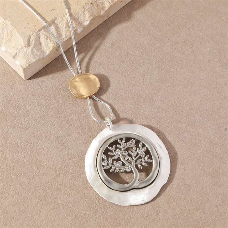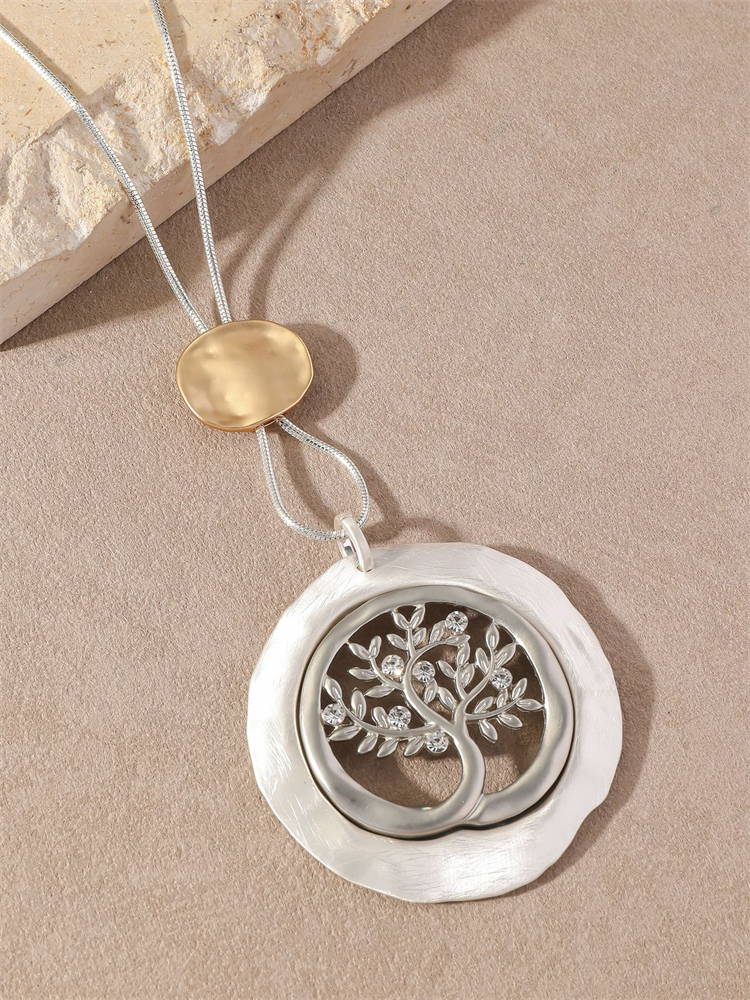 Vintage Viking Tree Of Life Diamonds Studded Long Necklace