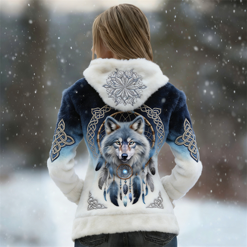 Vintage Wolf Dream Catcher Celtic Gradient Cozy Plush Hoodie