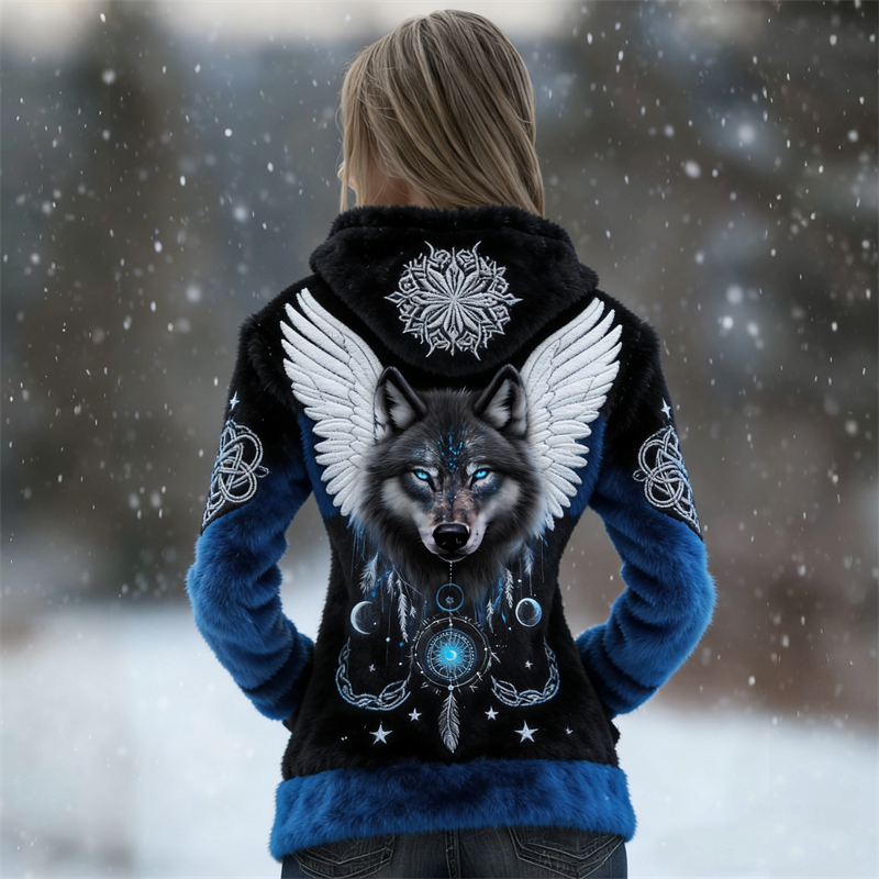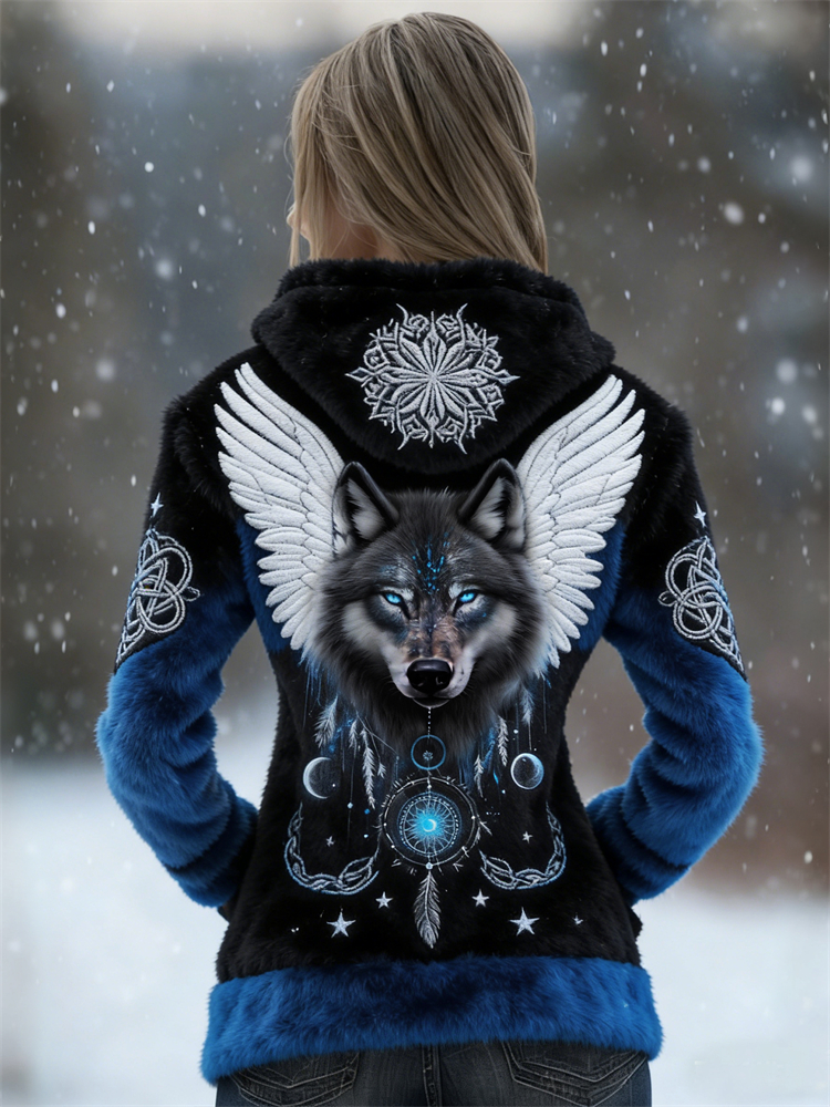 Vintage Wolf With Wings Celtic Gradient Cozy Plush Hoodie