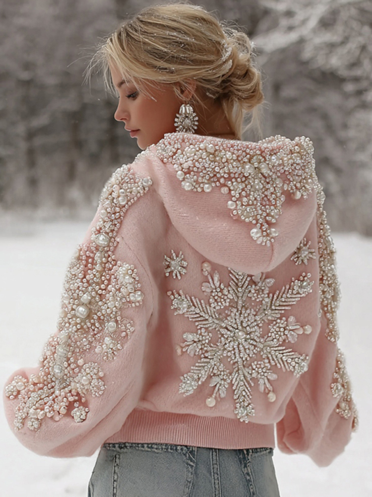 Women's Christmas Snowflake Pattern Long Sleeve Hoodie