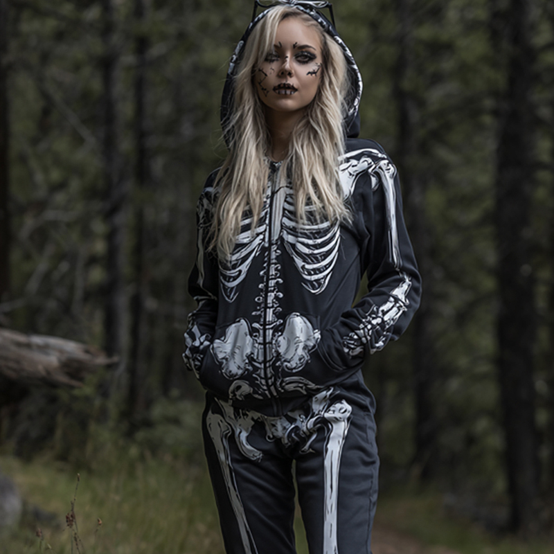 Women's Halloween Skeleton Pattern Two-piece Suit