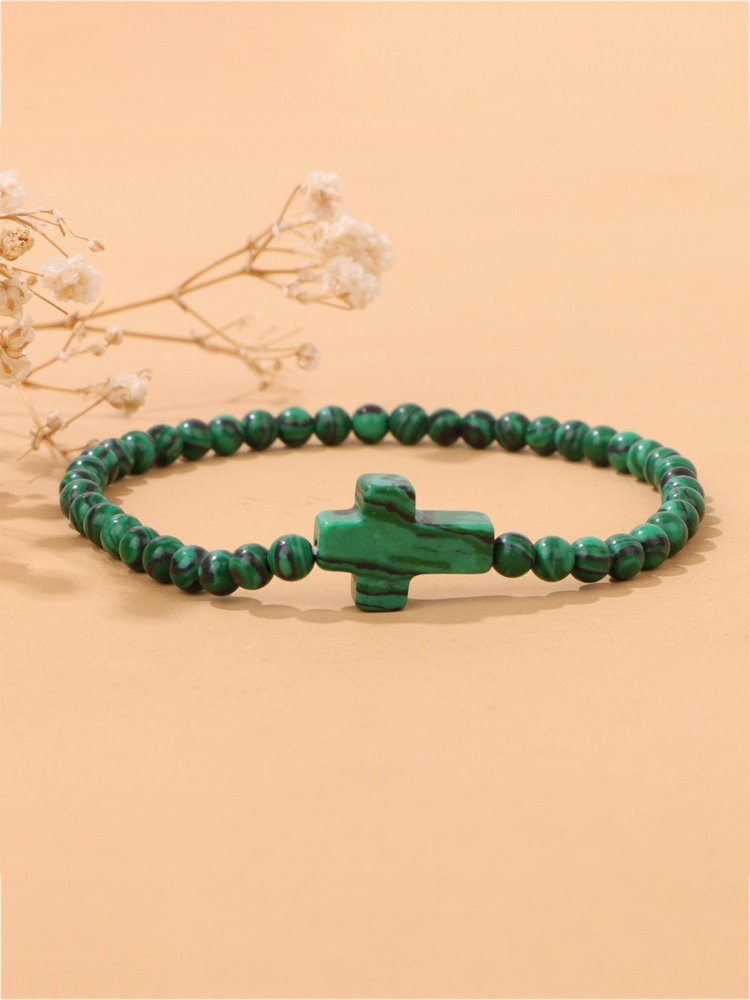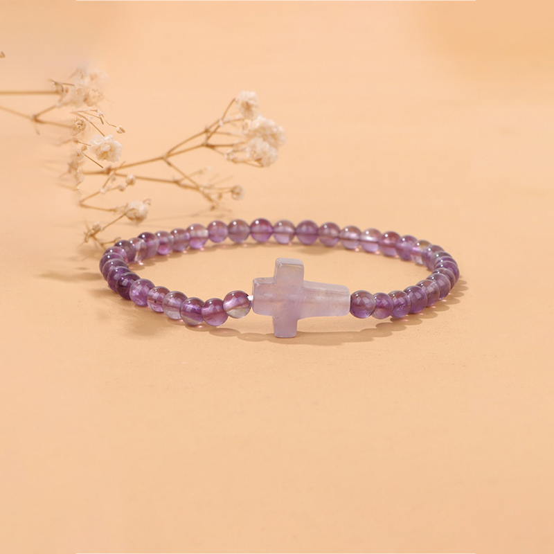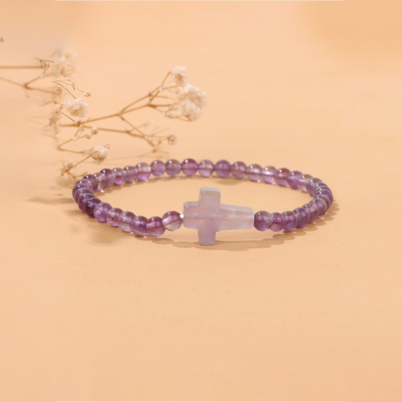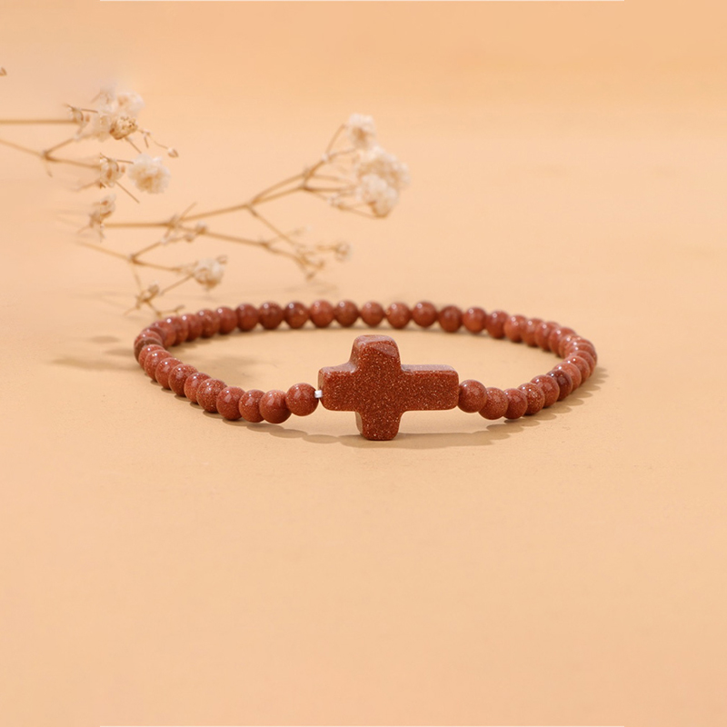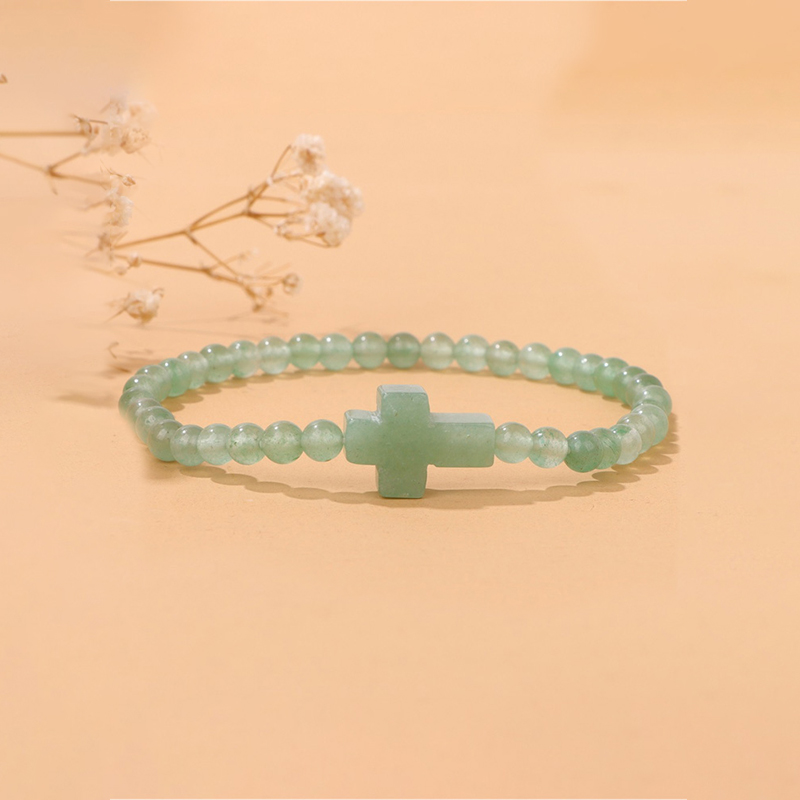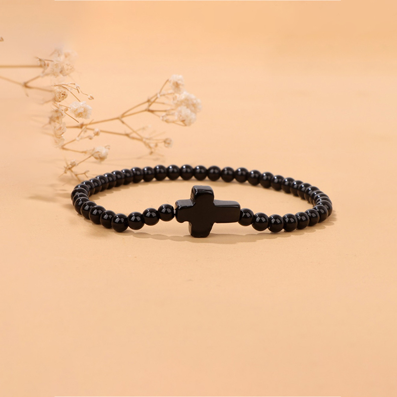 Women's Men's Unisex 4mm Natural Stone Crystal Cross Handmade Elastic Bracelet