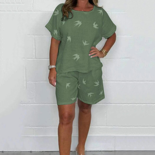Women's Peace Dove Print Comfortable Cotton And Linen Two-piece Set