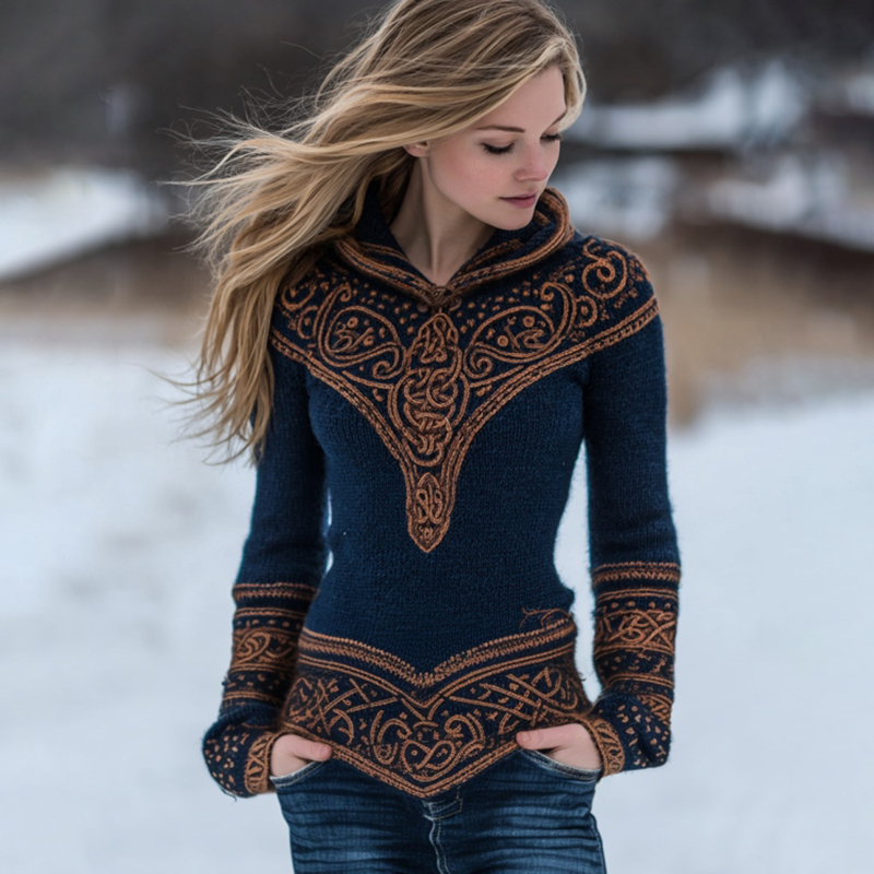 Women's Viking Celtic Knot Knit Cozy Hooded Sweater