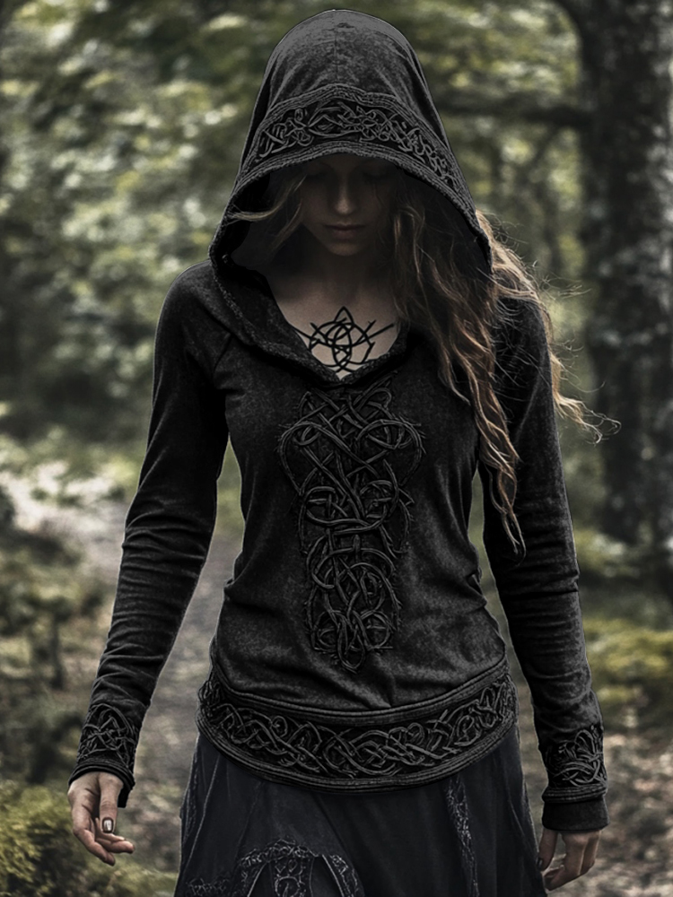 Women's Viking Jacquard Celtic Knot Art Hooded