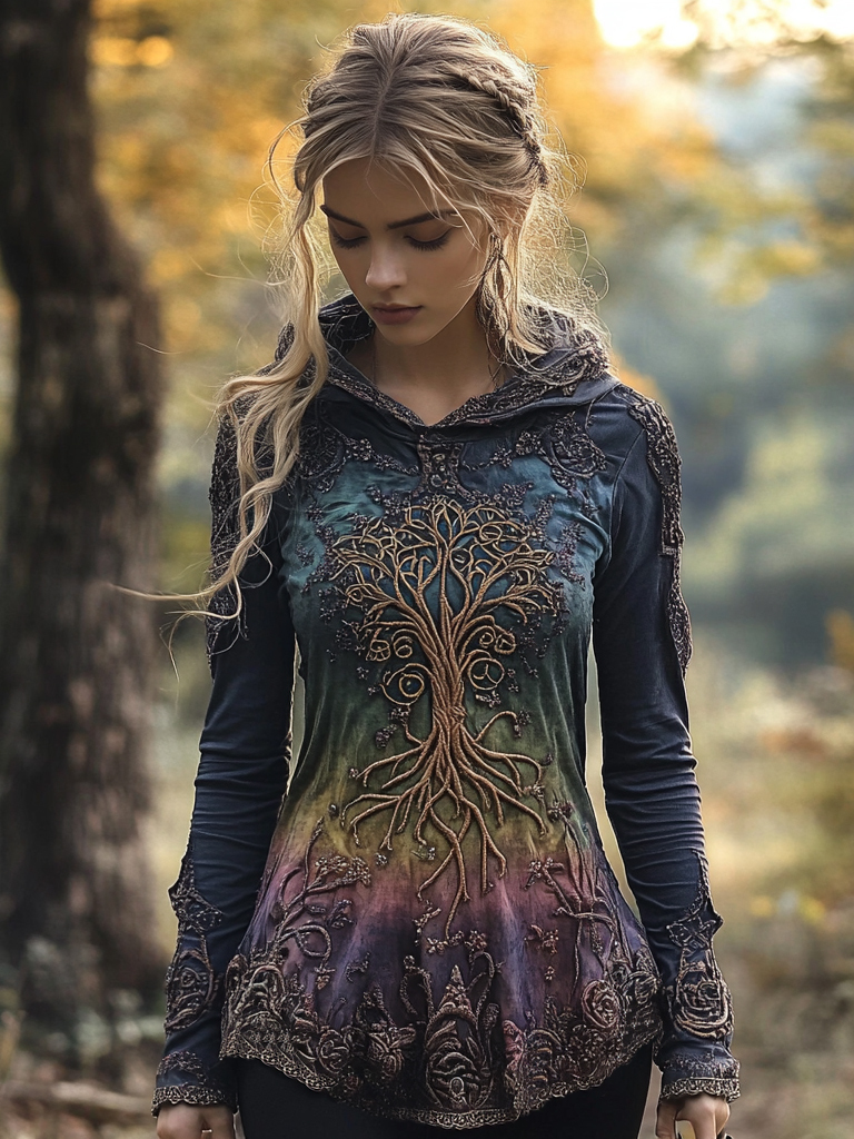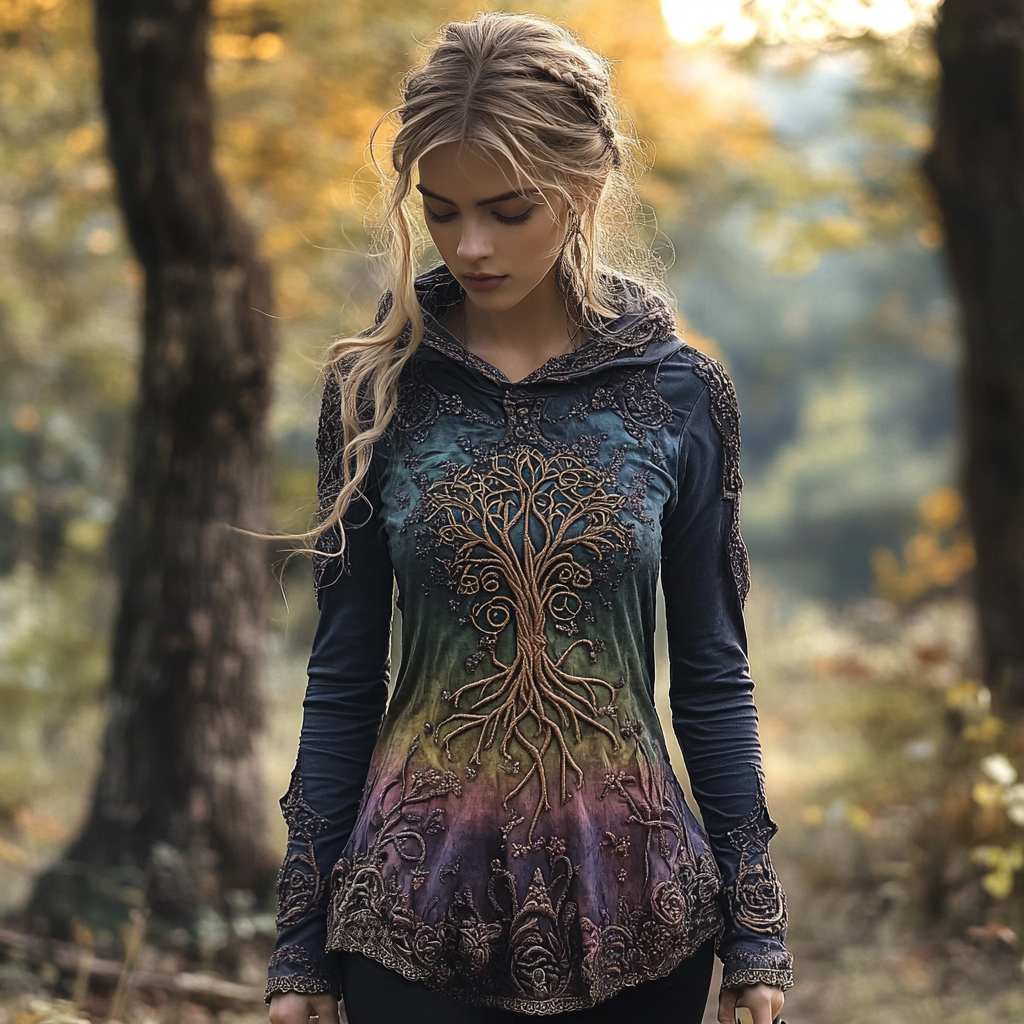 Women's Viking Tree Of Life Celtic Knot Gradient Art Hooded