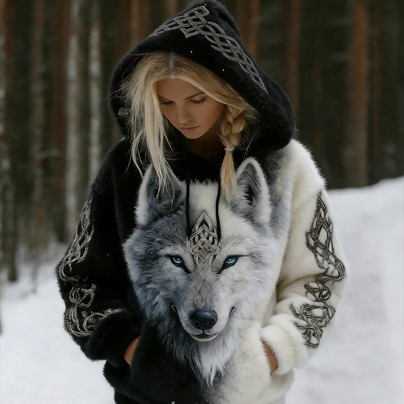 Women's Vintage Viking Wolf Celtic Knot Gradient Pattern Warm Hoodie